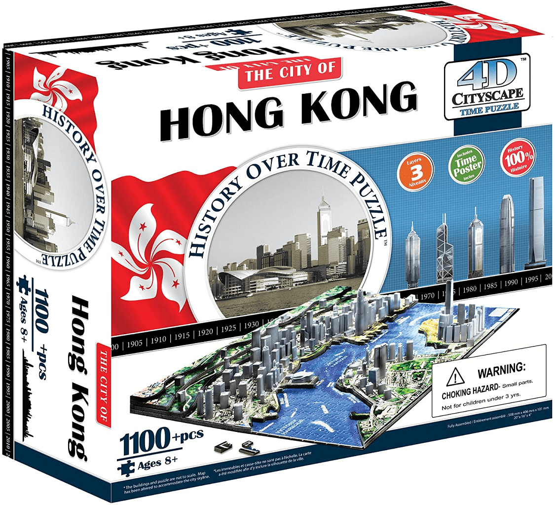4D Cityscape Hong Kong Puzzle is a patented three layer puzzle design that is both fun and educational. Layer 1 & 2 assemble together forming a geographical map of the city. The 4th Dimension is Time, located on the third layer of the puzzle. You refer to the Time Poster to locate & place each building on the map according to the year it was built. As you work your way through the Time Poster you are placing each building in chronological order as if history is happening before you eyes. The year of the last building placed on the map represents the year you are in the puzzle. The 4th Dimension Time Poster takes you through history as you insert each building into the puzzle floor in chronological order. As you play and refer to the poster, you rebuild and learn how the skyline actually evolved over time.