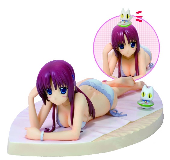 Kotobukiya De Capo SS Kotori Shirakawa Seaside Statue is 8.25" in length. Comes with Utamaru mini figure, and a display base for stability.