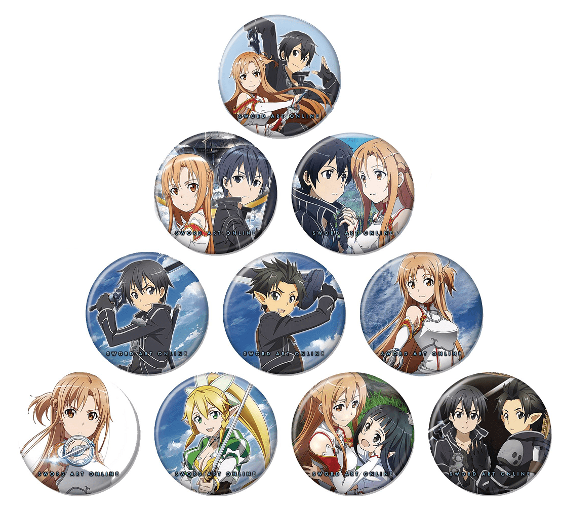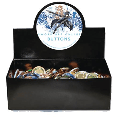 ATA Boy Sword Art Online Season 1 Button Case includes 14 unique designs featuring artwork and logos. Case total is 144 buttons.