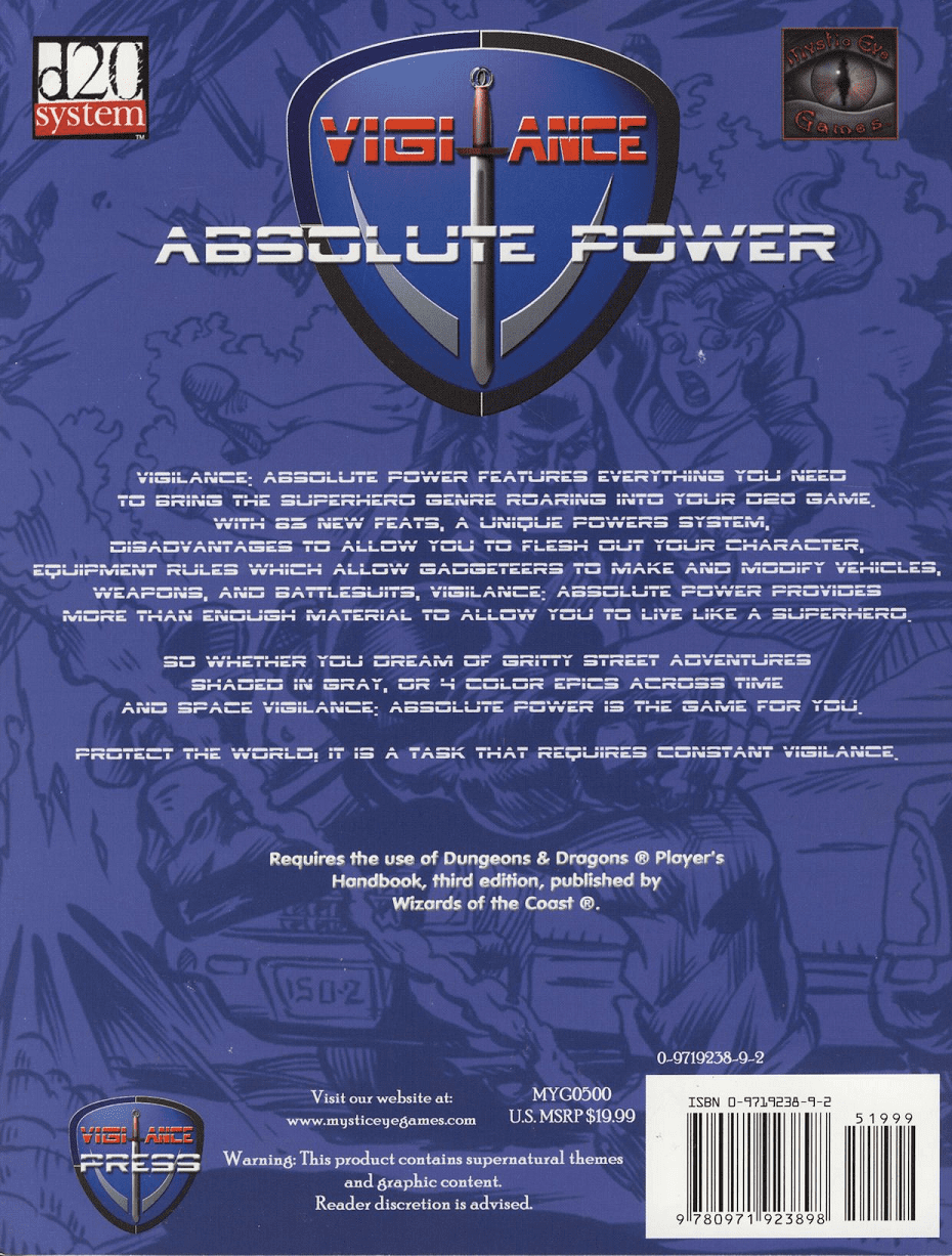 Mystic Eye Games d20 System Vigilance Absolute Power Sourcebook